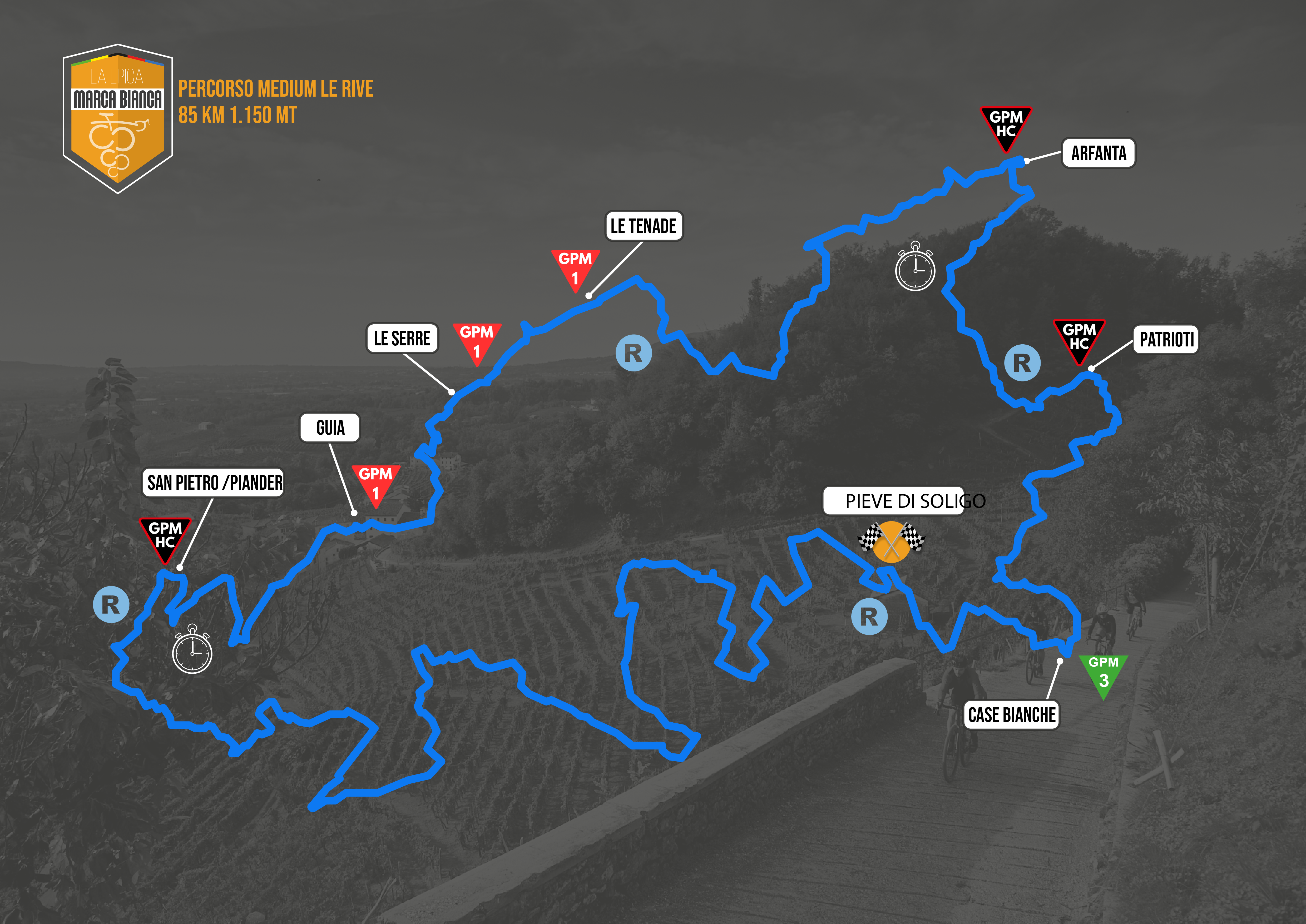 Ah, il primo percorso, il “grande fratello” della granfondo. Con 16 muri da scalare, è il tipo di percorso che ti fa guardare le montagne da un’altra prospettiva: come qualcosa da evitare a tutti i costi. Ma no, tu non ti tiri indietro, vero? La combinazione di salite brutali e 29 tratti di sterrato ti terranno occupato in una danza selvaggia tra ghiaia, polvere e la costante sensazione che la tua bici abbia iniziato a odiarti. Non è una granfondo, è un atto di resistenza mentale e fisica.